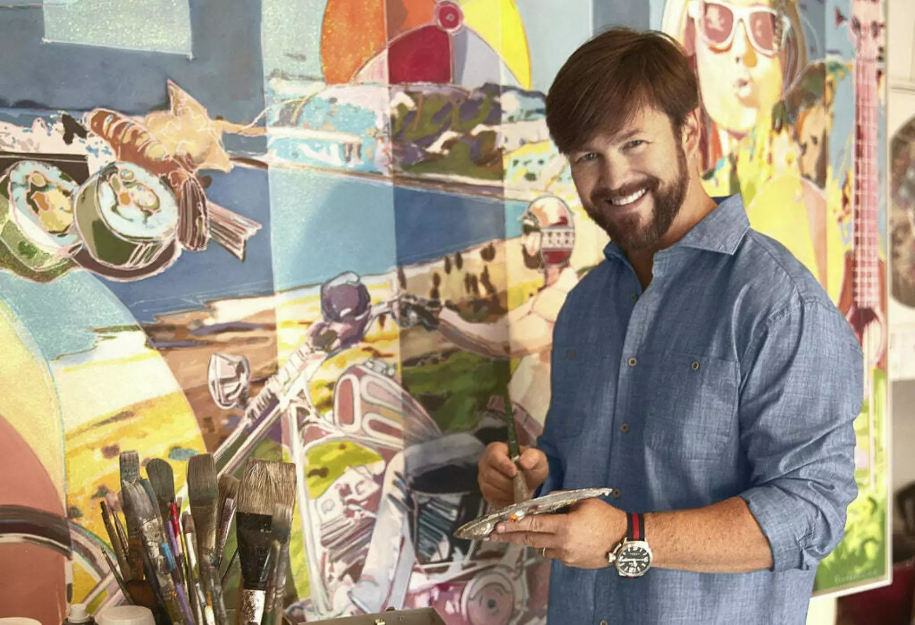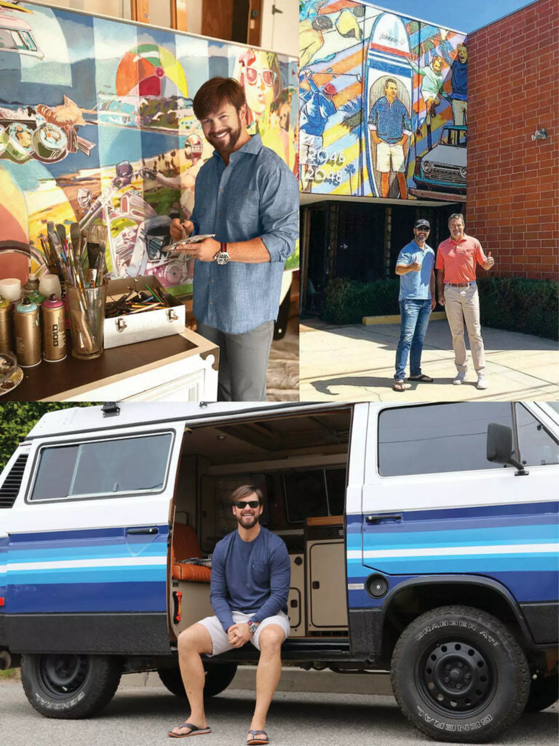 Mark was commissioned to paint a johnnie-O mural on the front of our office building. Needless to say, he knocked it out of the park. Mark is an Atlanta boy who made his way west years ago (with high school sweetheart in tow) to the City of Angels. He soon picked up on the Southern California lifestyle EVEN THOUGH they've recently moved back to Georgia, but we'll forgive him (in time). They are the proud parents of two beautiful children, Belle and Rex. When Mark is not cruising the campsites in his Volkswagen Westfalia with the family, or hitting the lake, you can find him in his studio painting. And I mean, painting. Mark is an extremely talented artist that I am happy to call a new friend, and I look forward to fun times ahead.