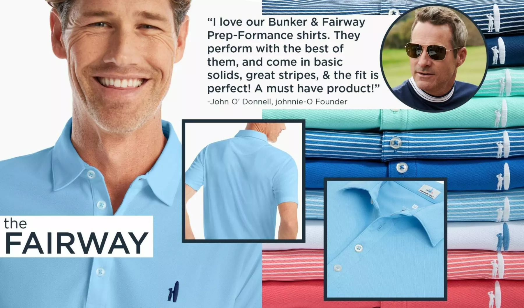 But what do we do? We keep coming back to the course! Because again, you do not have to be great to have a great time! Sport, business, camaraderie, there are endless reasons to rally the crew and head out for 18, and while our clothing can't perfect your mechanics, johnnie-O Prep-Formance gear serves purposes two-fold: to make you look good, and to make you feel good. And we're not just talking about the fuzzy feeling from our supremely soft polos (they are that soft), we're talking about actual technology woven right into each design, providing optimal mobility while wicking moisture. Bottom line, the winner of the day might not be you, but best-dressed ain't a bad consolation! And now it's time to gear up and get your game on with the johnnie-O Golf Guide!
