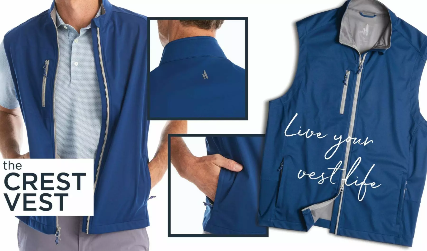 Live your VEST life! Not sure about the day’s forecast? Grab our wind and water resistant Crest Vest to keep you dry without your golf game going down the drain.The zip chest pocket offers the perfect stow space for scorecards, gloves or your phone — fashion and function, topped off with a 2-way zipper. Why 2-ways? For starters, it’s sartorially sensible, but more importantly, it allows you to reduce any restriction, providing optimal mobility so you can focus on making birdies (or par)! The vest to help you play your best. Done.