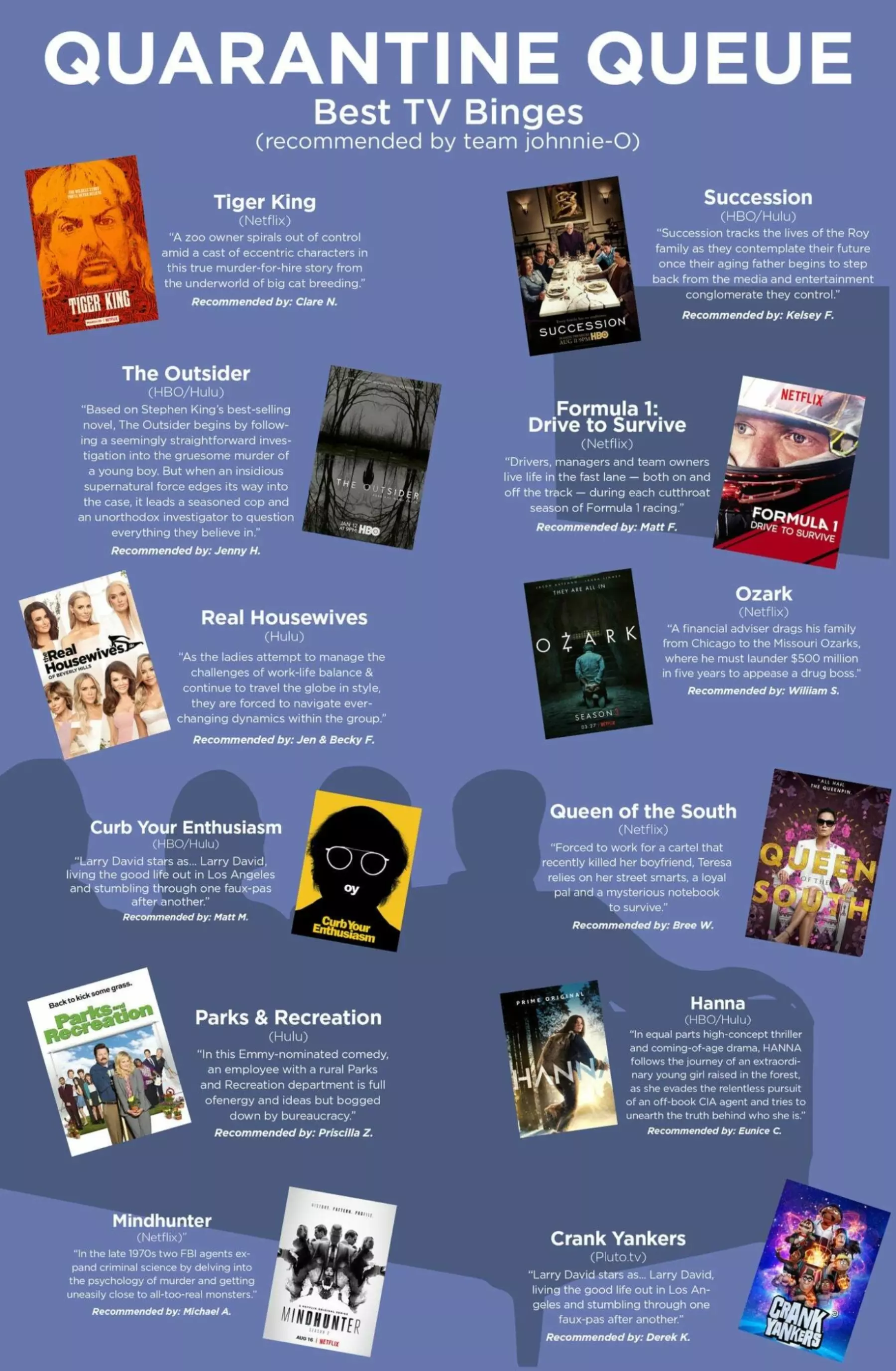 For the moment, however, most of our time, divided amongst work, children, play, mealtime, and leisure is almost entirely confined to our respective places of residence. And while we can't hit the beaches or put down birdies (and maybe a few bogeys), we CAN binge watch some of the best that TV subscription services have to offer. And in case you're looking for suggestions, team johnnie-O has you covered!