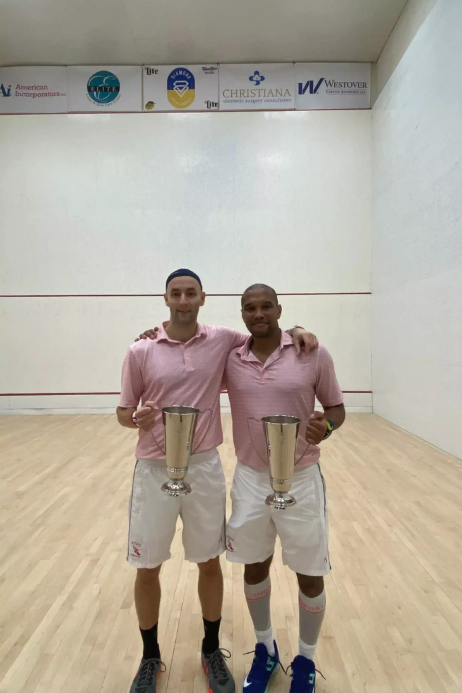 Jaymie: The Big Apple Open was held at NYAC, on our home courts which was great this year. We had great support from the members. Wilmington Country Club in Delaware - where we won our first title a few months ago was also a great experience.