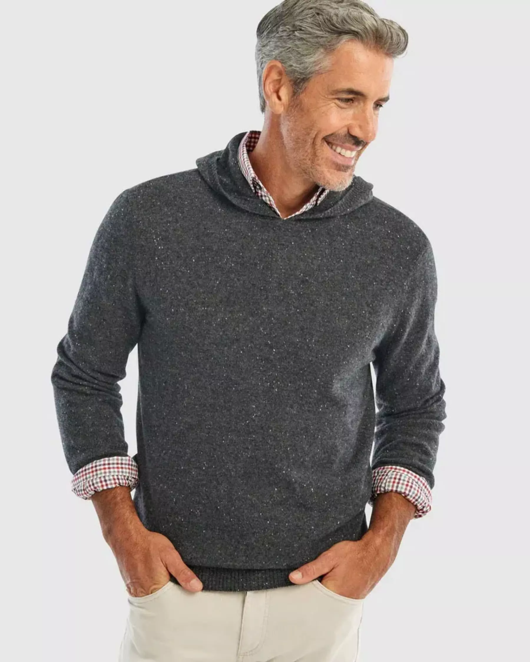 The Lewin is made of 100% pure cashmere to give it a silky smooth feel and sharp look. The ultimate tweener piece, this cashmere hoodie blends the line of casual or formal. Wear it wherever you'd like, whenever you’d like, the Lewin is a go-to in all situations.