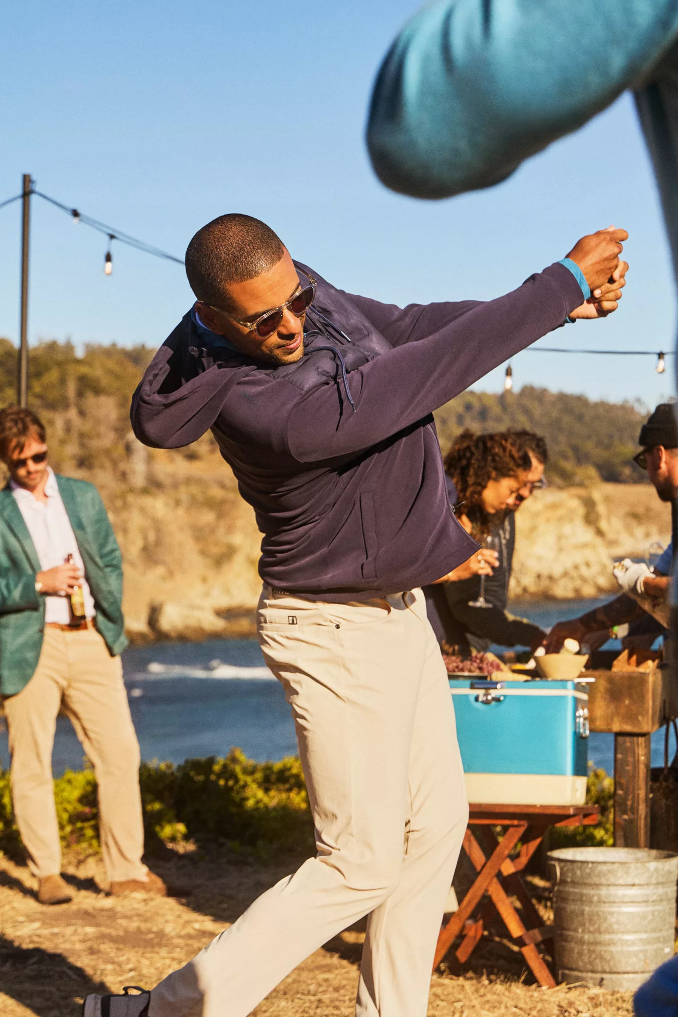 - Fairway Performance Mesh Polo: This breathable, sweat-wicking polo is perfect for the green but sharp enough for the 19th hole. Designed for guys who like their shirts untucked but stylish.