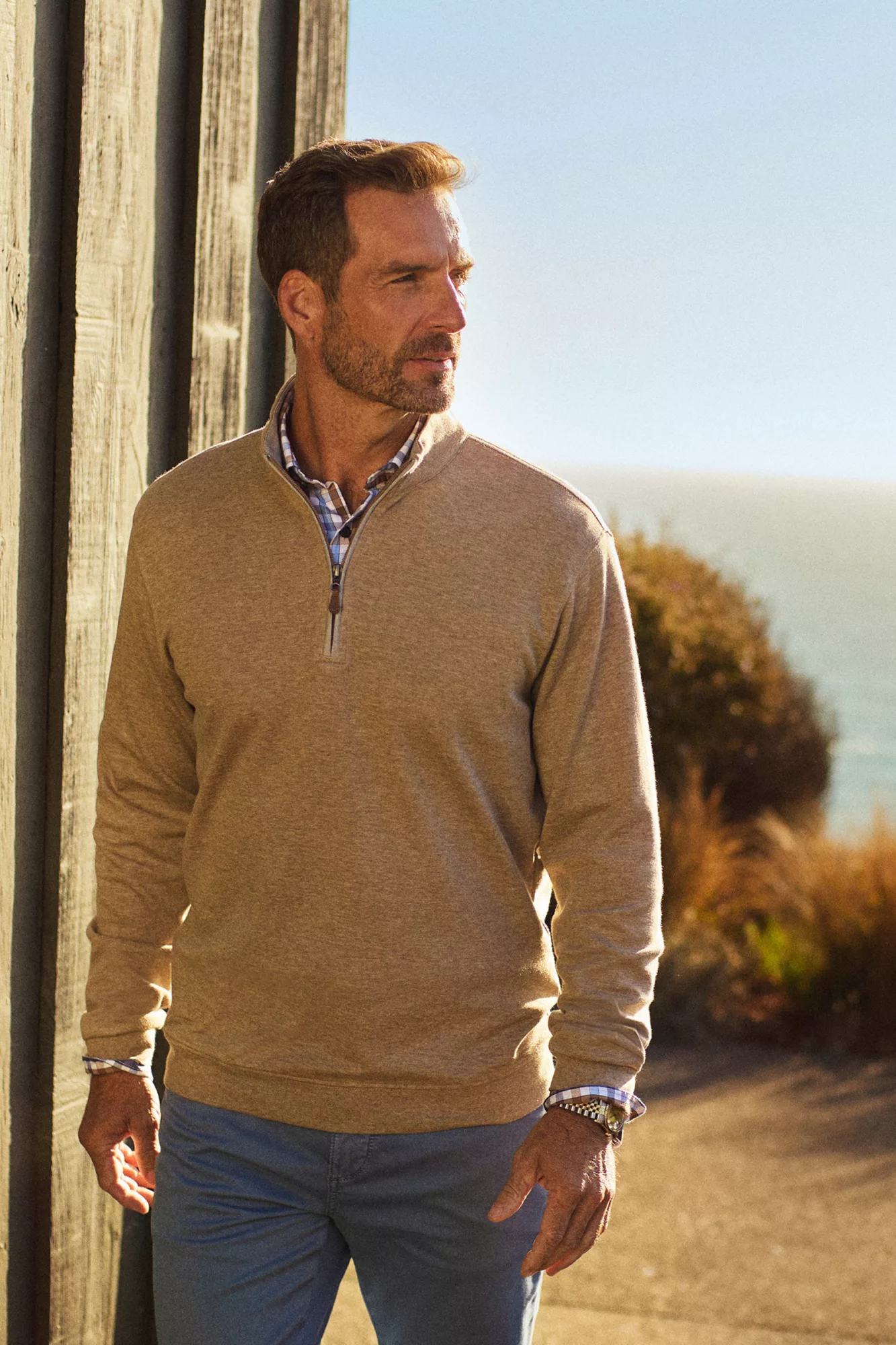 - Sully 1/4 Zip Pullover: Lightweight, warm, and stylish enough to wear anywhere. With wrinkle resistance and a leather pull, it’s a go-to for when he needs to look put-together but still wants to feel comfy.