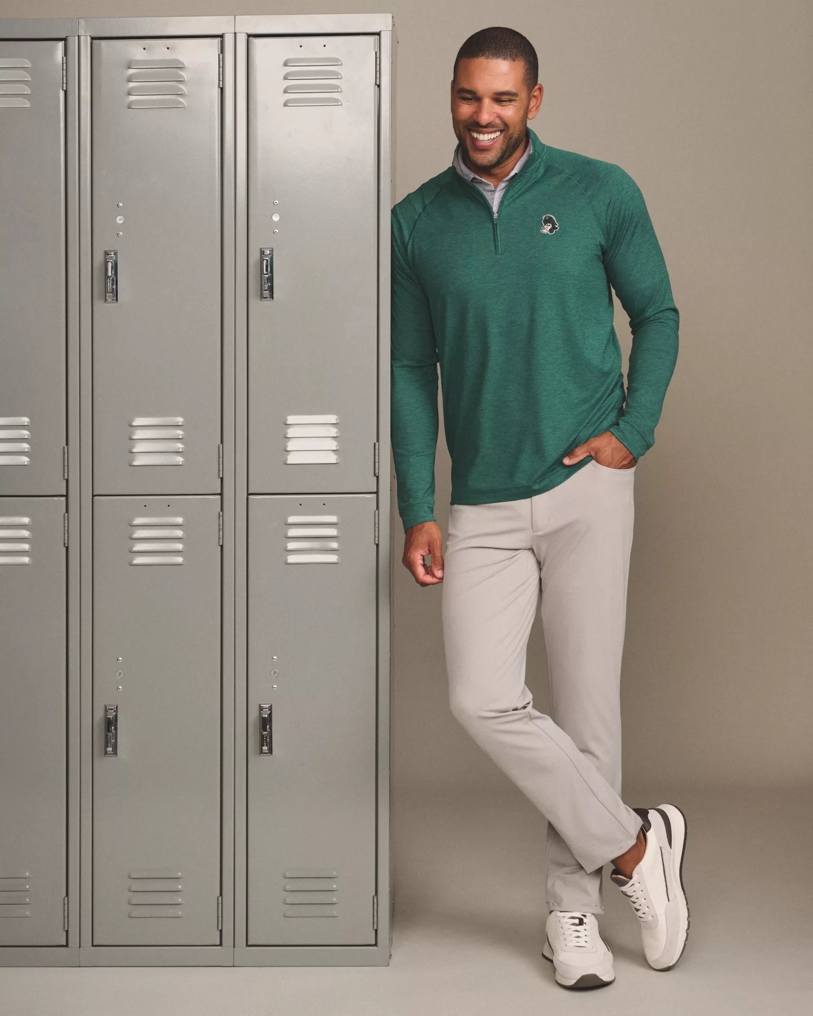 As the season progresses and temperatures drop, layering becomes your secret weapon. A vest or quarter-zip not only adds warmth but also layers of style. Neutral tones are your go-to, making it easy to pair with your team’s colors. Our Corsair Bomber Jacket or Crosswind Quilted Vest is just what you need to transition seamlessly from a sunny afternoon tailgate to a cool evening kickoff.