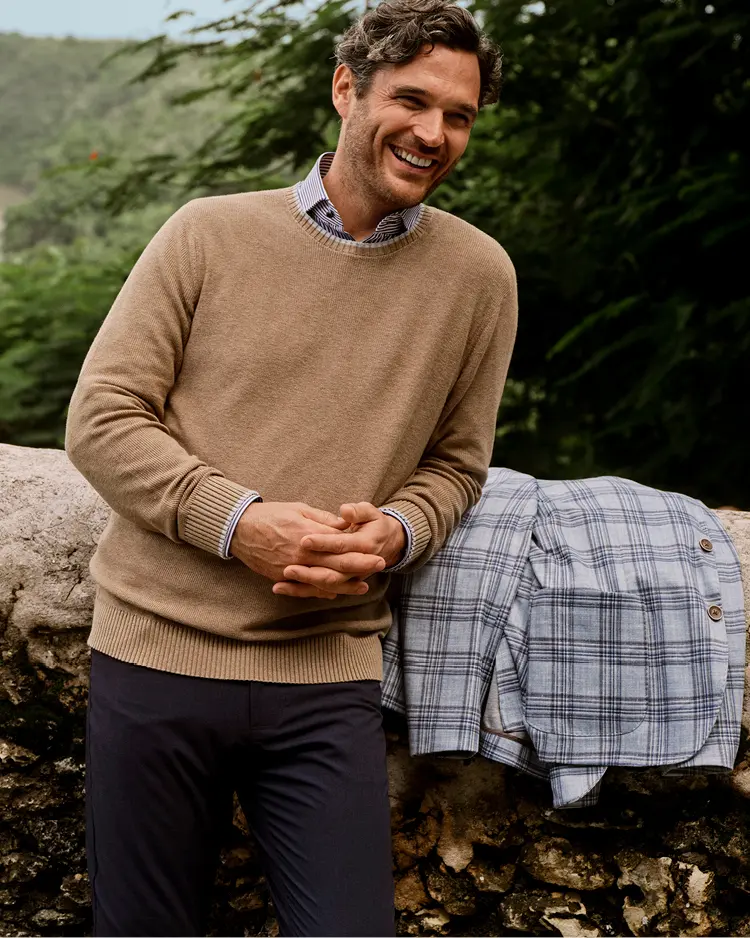Elevate your layering game with soft sweaters made with premium fabrics.