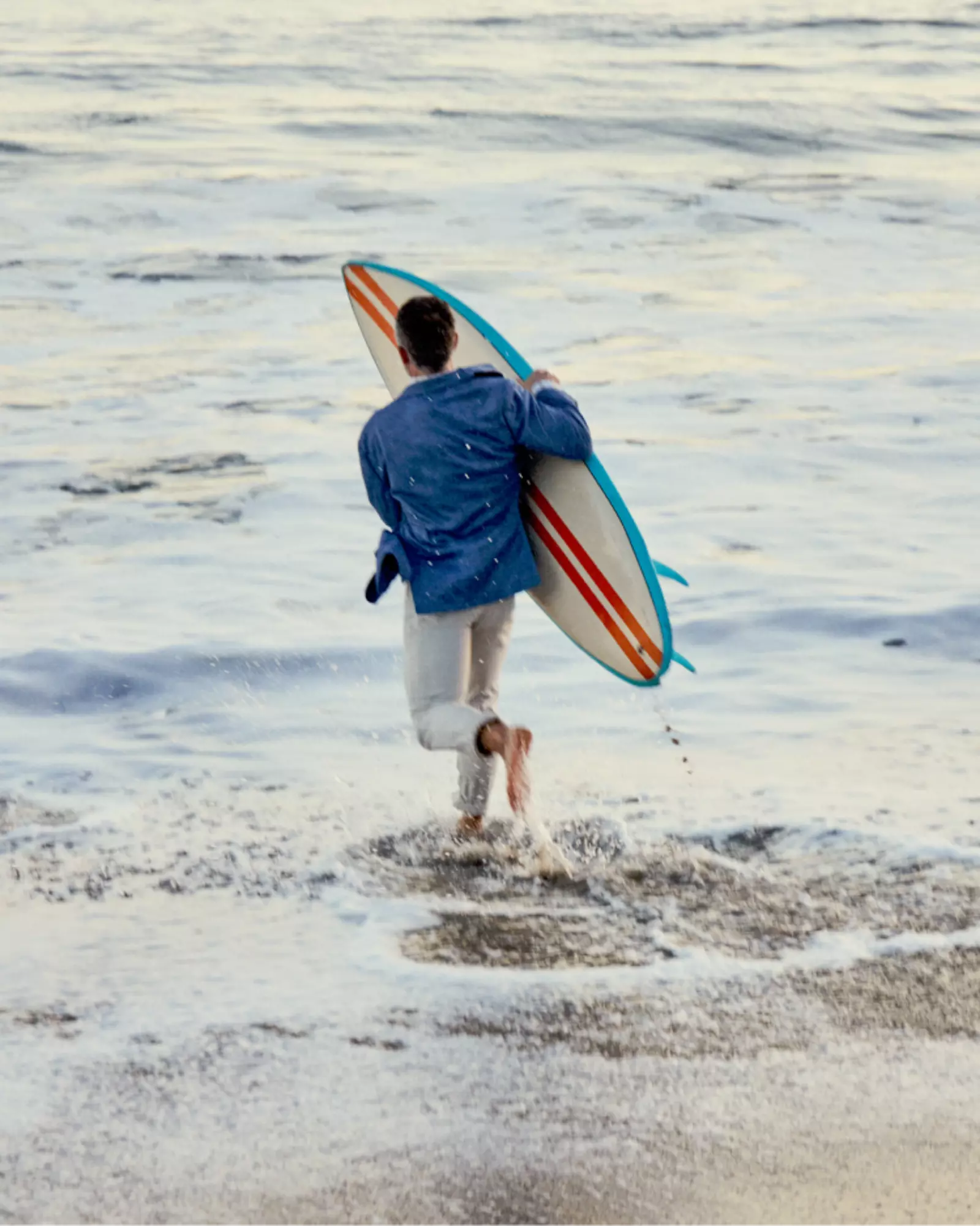 With our Original Polo, John wanted something that exemplified the spirit of Southern California and could stand with the East Coast brands he grew up with. The idea of a surfer in a moment of thought came to mind and fit perfectly for its focus on an active lifestyle and appreciating what’s in front of them. The rest is history.